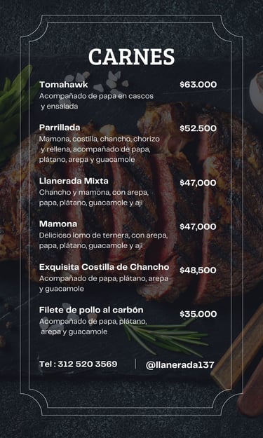 Res - Mamona - Ternera Chancho a la Llanera Sopas Típicas y Pescados